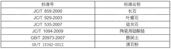 表:部分陶瓷原料企业标准和国家标准