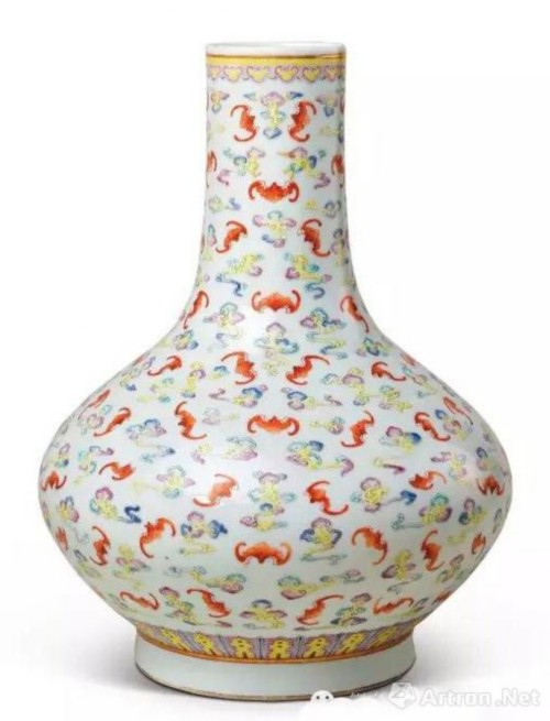 清光绪 粉彩云蝠纹荸荠瓶 H 33 cm