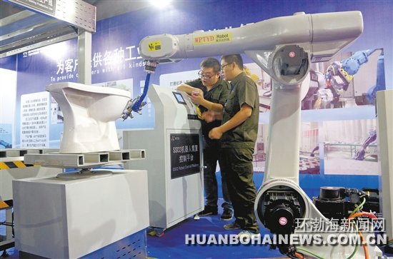 可以自动为陶瓷喷釉的机器人亮相本届陶博会