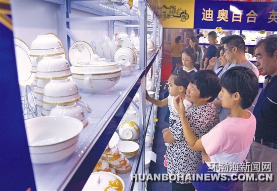 在陶瓷博览中心参观,选购陶瓷的市民络绎不绝