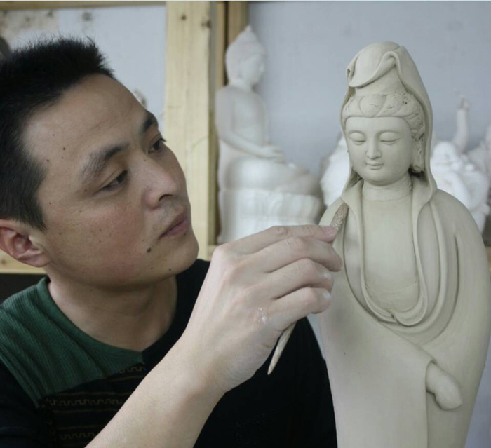 宗教雕塑第一人、明代陶塑家何朝宗是德化窑的代表性人物,是德化陶瓷人心中的祖师爷,其高超的陶瓷工艺仍流传于世。现今,延续何派风格的工艺艺人仍数不胜数,林建平就是其中一位。