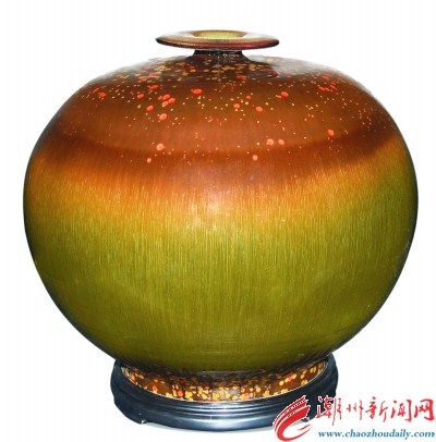 “你们来看,这是十多年前,我第一次烧成的作品。”林礼腾拉着记者,来到一只23寸直口花插前方,眉飞色舞地说,“多漂亮,肉眼看还不清楚,要是用特殊仪器观察,简直异彩纷呈。”
