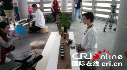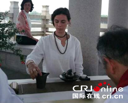 在丝路茶语活动现场,笔者亲眼看到,来自美国德州女子玛丽,在湘子桥上,娴熟的茶艺,把潮州功夫茶的精髓演绎得淋漓尽致。