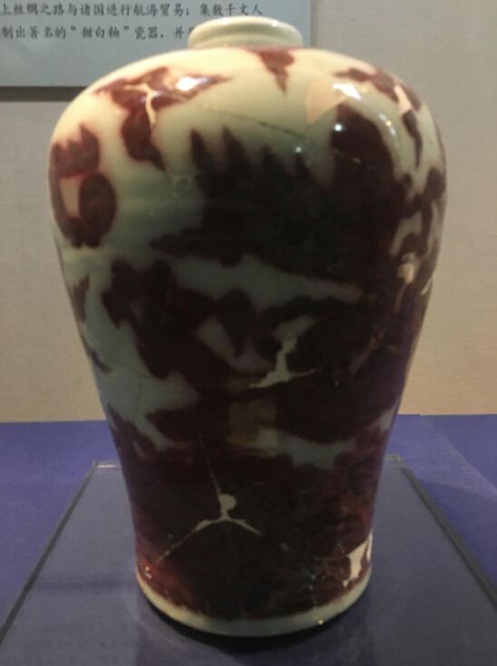 据工作人员介绍,元王朝在建国初年(1278年)就在景德镇设浮梁磁局,浮梁磁局是全国唯一的一所为皇室服务的瓷局,“掌烧造磁器,并漆造马尾、棕藤笠帽之事”。该局虽置地方,却是中央政府诸局院官中的一个,并配设有专门的局院官以司其事。因蒙古军队重视有手艺的工匠,在战争中奉行“惟匠得免”的政策,并积极推行对外贸易,景德镇窑业因此得到极大的发展,加之外来制瓷技术对景德镇制瓷业产生的重大影响,催生了许多瓷器新品种的诞生。至此,景德镇地区一改宋以来主要烧造青白瓷的局面,开始出现了产品多元化格局,其时枢府瓷(卵白釉瓷)风行,青花瓷崭露头角,釉里红成为一代名品。