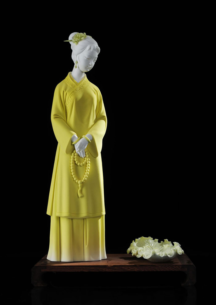 将在展出的作品中,一件由许氏第六代传人、中国工艺美术大师许兴泰之子——许瑞卿带来的代表作品,实心雕塑《贵妃醉酒》,品其立意,许瑞卿奇妙的构思与思维值得欣赏。尤其是绝妙地借助了在捏、塑、雕、镂、贴、接、推、修的过程中的变换所形成的气象,贵妃那与整体造型构成相辅相成、意趣横生的细节,都妙造了体、面、线、点的手艺美和形式美,刚柔相济、静中寓动。作品实心制作,烧成难度非常高,是非常难得的佳作