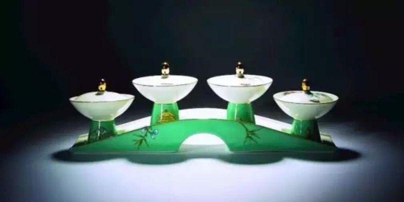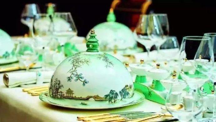 这套国宴餐具原本设计了17套方案,最终选用了最后一套。设计者在满足每道菜功能的同时,最重要的是考虑到中国文化的传递和对G20的诠释。“杭州最有代表的是西湖,所以最终方案从一滴水开始讲起。比如咖啡器具用的是莲蓬,提钮是水揪形状,金色代表经济来往。”冷菜拼盘半球形的尊顶盖是最引人注目的器具,尊顶盖顶端提揪设计源于西湖十景之一、被誉为“西湖第一胜境”的三潭印月。尊顶盖上半部图案创意则来源于“满陇桂雨”,以杭州市花——桂花与江南翠竹自然相互依偎展开,寓意美丽的杭州喜迎各国贵宾,同时也体现了G20成员同舟共济、携手合作的精神。尊顶盖下半部分则是以国画写意手法绘制的西湖美景。值得一提的是,这套国宴瓷还将转换成家宴瓷,让普通家庭也能用上中国文化餐具。