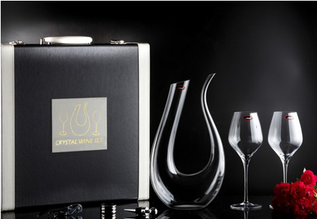 与会展商针对礼品渠道,开发出各种可个性化订制的礼品套装,如来自山西玻璃制品团的祁县东久玻璃器皿有限公司,一款无铅水晶酒具礼盒套装采用防皮质礼盒,内配无铅水晶酒具,纯人工吹制U型醒酒器一壶两杯,附带酒刀,酒塞,酒环,不失为高端礼品的上佳选择。