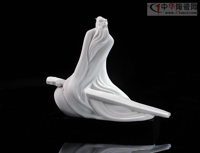 传说先秦的琴师伯牙一次在荒山野地弹琴,樵夫钟子期竟能领会这是 描绘“巍巍乎志在高山”和“洋洋乎志在流水”。伯牙惊道:“善哉,子之心而与吾心同。”钟子期死后,伯牙痛失知音,摔琴绝弦,终身不操,故有高山流水之曲。作品采用温润如玉的“中国白”为载体将人物、情境刻画得惟妙惟肖,人物线条简约大气,大师手笔,双目微闭,神情投入忘我。