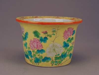 清朝 黄地粉彩菊花纹圆花盆 北京故宫博物院藏