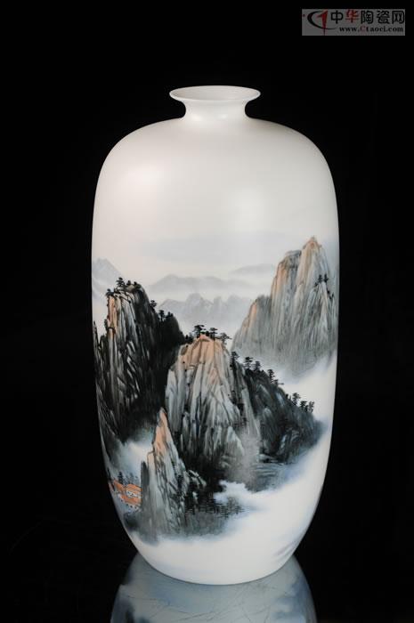 作品胎体采用德化上等玉瓷制成,瓷泥一吨达数万元,瓷质细润,非常通透。作品彩料凝重,色泽鲜艳,画工精致,所绘云海,峰石的实景和云海的虚景绝妙的配合,一片烟水迷离之景,是诗情,是画意,是含而不露的含蓄美。