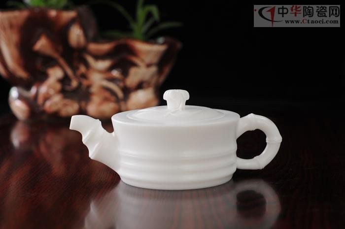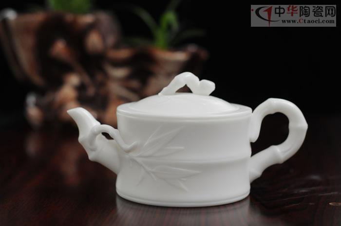 作品采用特级德化白瓷高岭土,每吨数万元。壶身、壶柄宛如竹节,节节高升,执壶在手,光润洁白,如脂似玉,作品胎骨洁白,坚实致密,有凝脂似玉之感,迎光透视,色泽光润明亮,晶莹剔透,集实用性、观赏性、收藏性于一体。作品手刻签名。