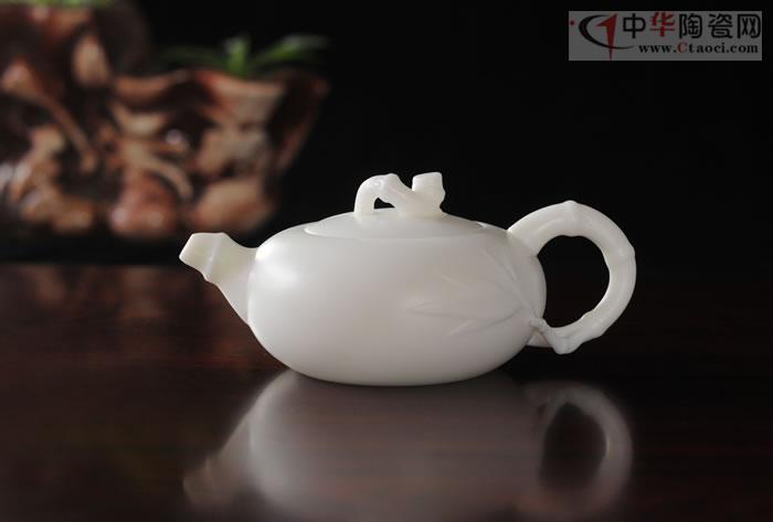 用最好的白瓷泥做最好玉瓷壶是曾逸腾老师的追求,作品采用特级德化白瓷高岭土,每吨数万元。壶嘴壶柄宛如竹节,节节高升,执壶在手,光润洁白,如脂似玉,手感极佳,令人爱不释手,作品胎骨洁白,坚实致密,迎光透视,色泽光润明亮,集实用性、观赏性、收藏性于一体。
