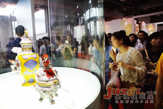 瓷博会上,一件件来自欧洲陶瓷艺术品吸人眼球(记者付裕摄)