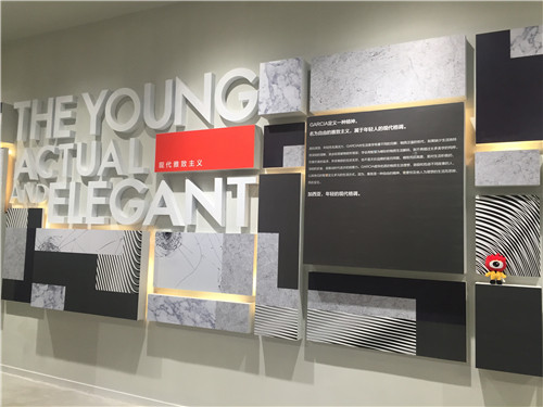 在华夏陶瓷城,加西亚瓷砖现代雅致风格展位旁边,是QD瓷砖“最美不过中国风”展位。从产品到空间展示,都有一种中国水墨画的韵味,吸引了不少观展人特别是年轻人驻足。