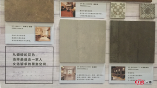 在芒果瓷砖展厅,风格化更为明显。芒果瓷砖是最早主打风格的陶企之一,一直呈现田园生活方式的风格。这次陶博会展示的新品有更多年轻化的因素——现代仿古砖新品,颜色多以黑白灰米黄为主,产品旁还会配上空间效果图,让消费者一眼能确定这是不是自己想要的空间。