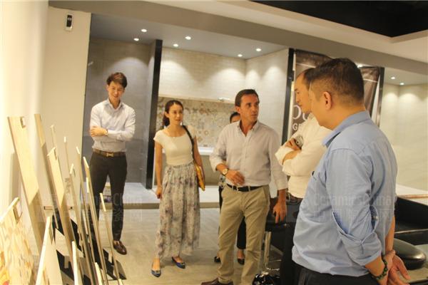 面对五星级的豪华展厅和丰富多彩、琳琅满目的产品表现出了浓厚的兴趣,罗马磁砖董事长、意大利奇尔陶瓷总经理黄岳鸿详细咨询了有关产品种类、价格和供货等方面的情况,并在此基础上展开沟通交流,对欧美陶瓷的产品质量及工艺给予高度评价,高度赞扬欧美陶瓷不断追求产品创新发展的精神,期待双方合作共赢。