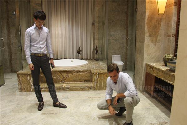 贺刻德先生详细了解欧美现代时尚仿古砖
