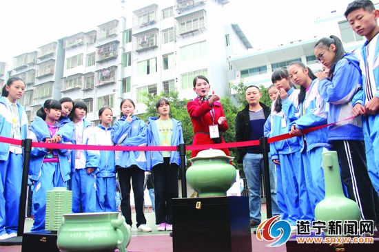 巡看国宝宋瓷 ——遂宁流动博物馆走进校园 昨(2)日,“巡看遂宁国宝——遂宁流动博物馆”巡展活动正式启动。首场巡展走进大英实验学校,全校师生在校园里就感受到了遂宁国宝的魅力。 流动博物馆活动由市教育局、市文广新局组织,由四川宋瓷博物馆送达全市各中小学校展览。活动将长期开展,每周将走进3所遂宁的中小学校展览,四川宋瓷博物馆还将不断更新展览的主题,让全市的中小学生更直观、更系统地了解遂宁历史,弘扬传统文化。