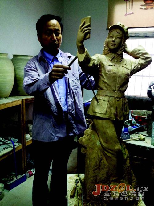 “我曾经去过几次井冈山,觉得那里的红色文化旅游特别好。如今,年轻人该如何学习革命传统,怎样去坚守革命信仰?心中有信仰,脚下有力量。穿红军装、吃红米饭、走长征路,学习我们先辈抛头颅洒热血,为社会主义事业而奋斗终身的精神。以前,我就想做这个体裁,它的寓意也是无穷的。”孙燕明说,创作井冈山革命历史题材的大有人在,他考虑的则更多是体现现在井冈山的特色。雕塑是四维立体图形,如何抓住它的典型形象来表现?就要采取带点写实的手法去做,拿着的手机代表现代的东西,衣服棱角明显能给人一种新衣服穿上身的感觉。为了抓住这么精彩的一瞬间,孙燕明找来了很多的模特,拍了很多照片,才创作出这么生动的作品。