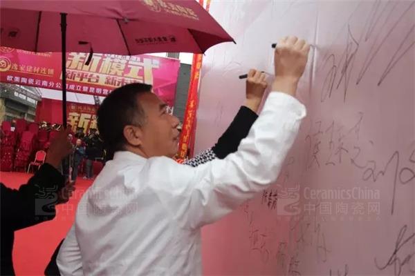 活动伊始,现场音乐骤然响起,人气聚揽。此次盛典吸引了中国建筑卫生陶瓷协会流通分会秘书长刘勇、广东欧雅企业董事长霍炳祥、广东欧雅企业总裁陈焕连、逸家建材董事长钟兴、广东欧雅企业执行总裁霍柱荣、广东欧雅企业工程事业一部总经理何振江、欧美陶瓷云南分公司总经理冉明、逸家建材欧美陶瓷事业部总经理魏顺勇、欧美陶瓷各分公司领导等各界领导嘉宾及社会知名人士近500多人出席了庆典仪式。