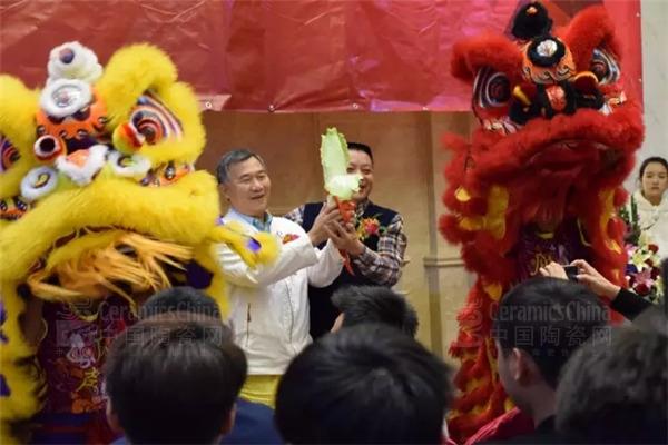 广东欧雅企业董事长霍炳祥、逸家建材有限公司董事长钟兴共同为瑞狮点睛