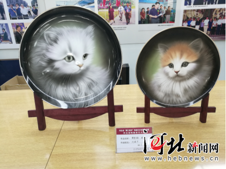 11月15日,河北省“唐工院杯”陶瓷艺术优秀作品展暨陶瓷技艺大赛开幕,图为喷彩作品《猫》。
