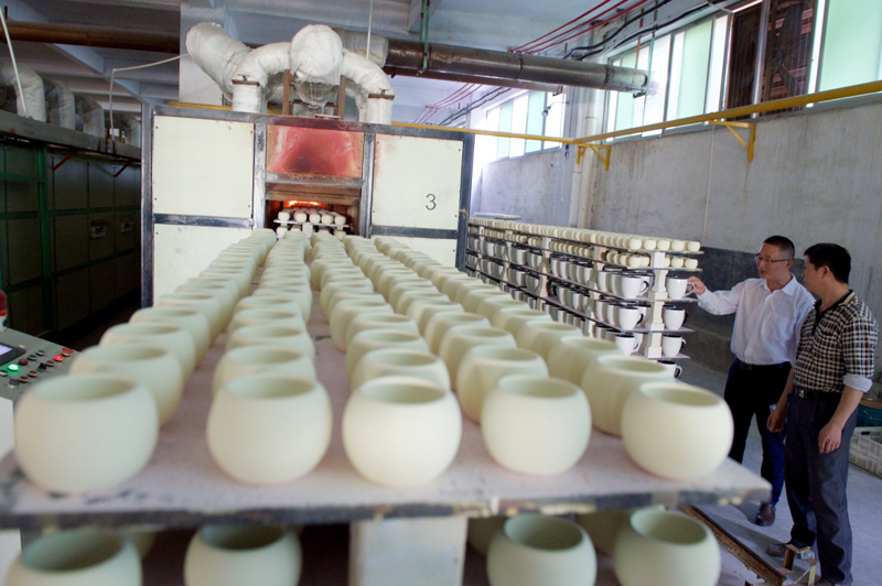 11月17日,福建省德化县一家陶瓷企业使用电热隧道窑炉进行陶瓷生产。