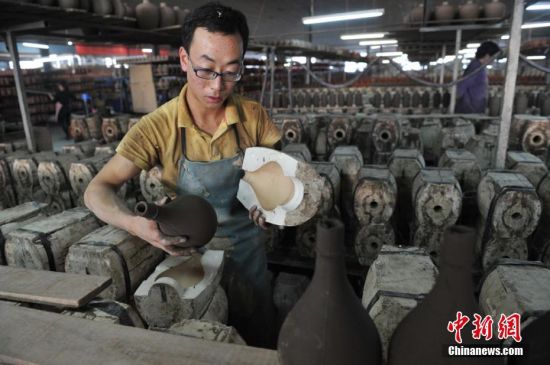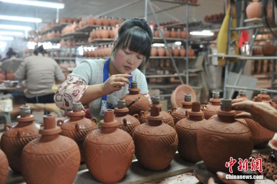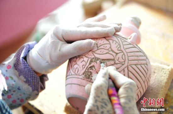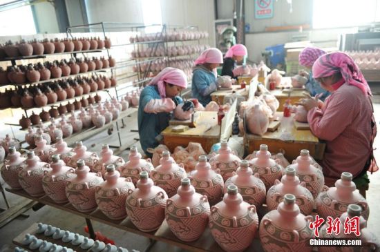 11月下旬,甘肃武威普康陶艺厂内,工匠师们正在烧制“西夏古瓷”。近年来,中国社会科学院西夏文化研究所学者孙寿龄根据史料记载及历史文物研究后,运用传统西夏瓷器制作技艺“复活”了一批极为珍贵的西夏瓷器。为了更好地发扬和传承西夏瓷器,在孙寿龄的建议下,当地一家白酒企业将这些“复活”瓷器定制成为酒瓶,由陶瓷生产企业按照传统工艺规模化生产实现商品化,让濒临失传的西夏瓷器文化复兴。