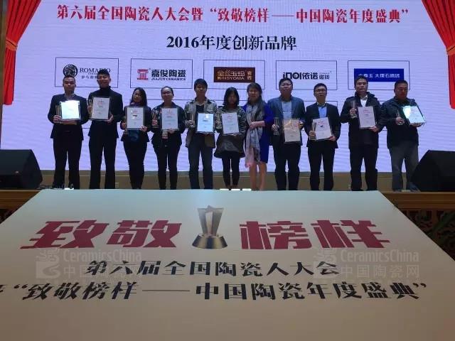 2016年度创新品牌:罗马利奥磁砖、嘉俊陶瓷、金丝玉玛瓷砖、依诺磁砖、金尊玉大理石瓷砖、维京瓷砖、太阳陶瓷、壹号大理石瓷砖、裕成陶瓷、梦幻玫瑰陶瓷