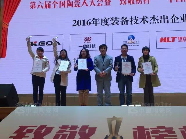 2016年度装备技术杰出企业:广东科达洁能股份有限公司、广东一鼎科技有限公司、广东中窑窑业股份有限公司、佛山市恒力泰机械有限公司、广东博晖机电有限公司