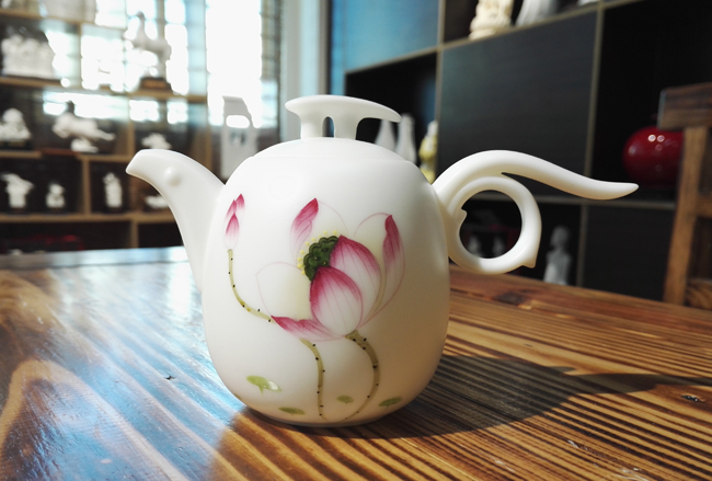 简介:壶身高挑,造型优雅,壶身手绘荷花,清新淡雅;壶柄设计精巧灵动,远观优如在展翅欲飞的凤凰。作品采用特级德化白瓷高岭土,每吨数万元,手工制作,经1300多度高温烧制,如脂似玉,迎光透视,手感极佳,令人爱不释手,集实用性、观赏性、收藏性于一体。
