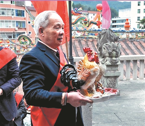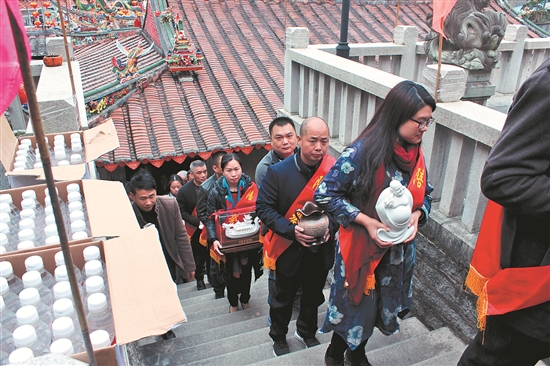 春节期间,一年一度的“祭窑坊公林炳”的活动,在德化县龙浔镇宝美村举行。祭祀的供品很特别,敬献的不是猪、牛、羊“三牲”祭礼,而是德化陶瓷行业的陶艺家和企业家新开发并获得订单的产品,以及陶瓷艺人新创作并获奖的艺术品。 据了解,农历正月初六是窑坊公林炳诞辰日,每年这一天在祖龙宫进行的奉祀,成为德化陶瓷文化的重要活动之一。