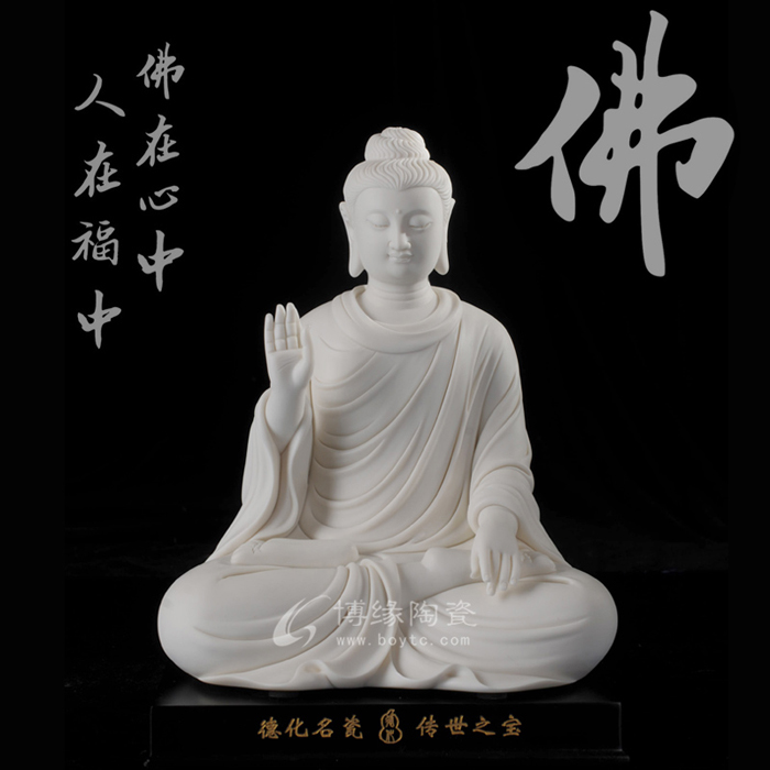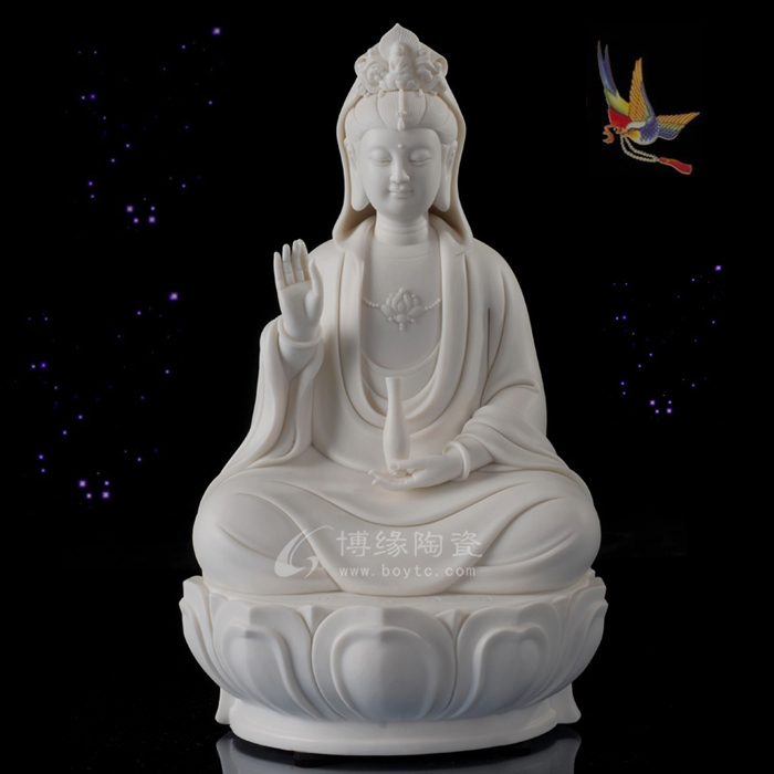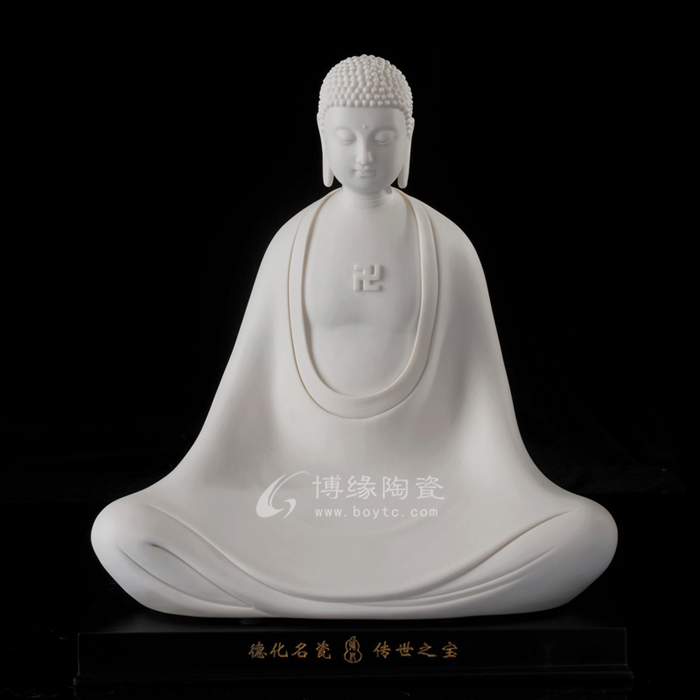 在追随何朝宗艺术脚步的同时,林建平也一直在寻找着突破。他努力把德化古代的制瓷工艺与自我净心感悟的思想有机结合,展现当前审美的简约风格。广受欢迎的《瓷韵观音》和《持莲观音》便是这种创新的代表作,从传统工艺中走出的新的审美理想,照样创造出佛像的庄严、肃穆、慈悲、大爱。