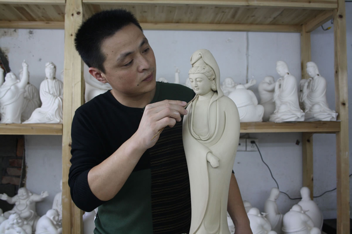 宗教雕塑第一人、明代陶塑家何朝宗是德化窑的代表性人物,是德化陶瓷人心中的祖师爷,其高超的陶瓷工艺仍流传于世。现今,延续何派风格的工艺艺人仍数不胜数,林建平就是其中一位。