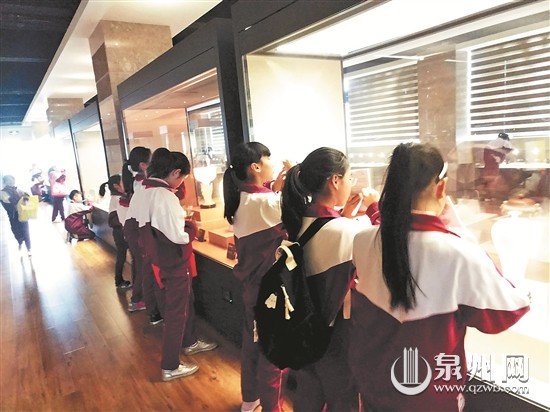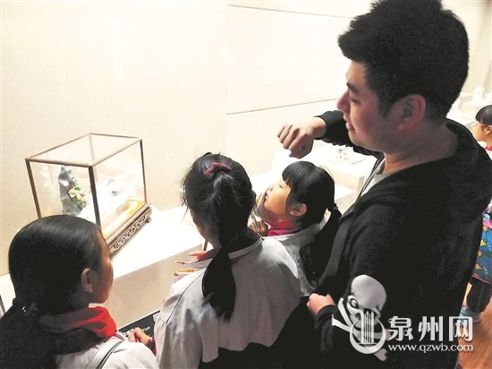 3月3日下午,南安市霞美中心小学学生记者54人一行,走进南安市光电产业园汉侯博物馆参观。博物馆收藏有瓷都德化著名陶瓷艺术家许兴泰、陈其泰、苏勤明、苏清河等省级工艺美术大师的陶瓷精品1500余件。通过这些作品,学记们了解到当代陶瓷艺术品的创作工艺、艺术特色和人文内涵,陶醉在每件作品中,精美的陶瓷仿佛在叙述说一个个故事,令学记们遐想连连,爱不释手。