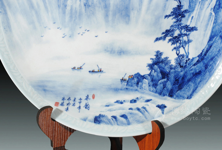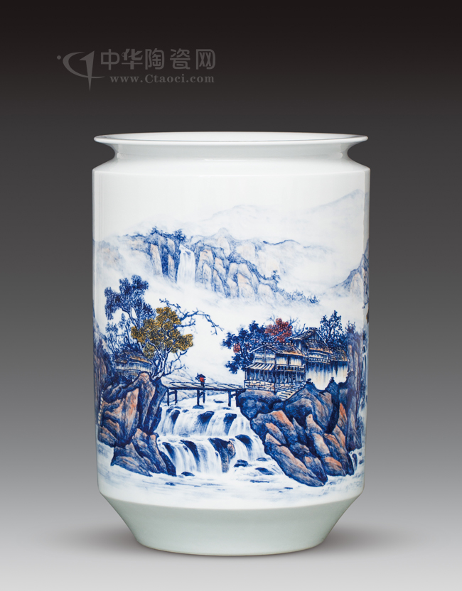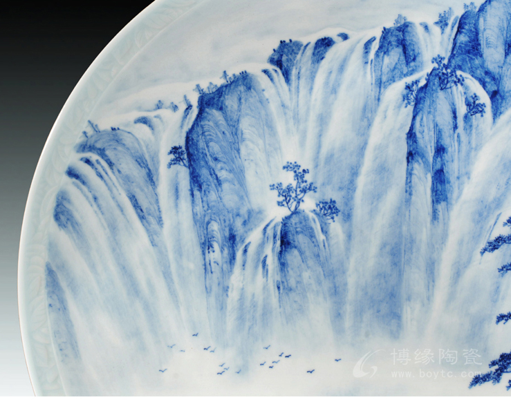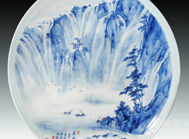 经过在实践中不断探索和创新,形成了自己独特的艺术风格即"釉下堆雕山水",使作品具有独特质感效果。