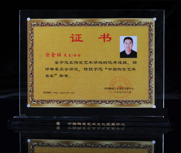 2016年9月,鉴于涂金旺在陶瓷艺术领域取得的突出成就,经中国陶瓷艺术文化发展中心评审委员会评定授予涂金旺“中国陶瓷艺术名家”称号