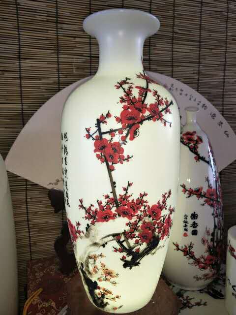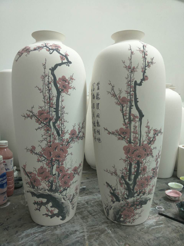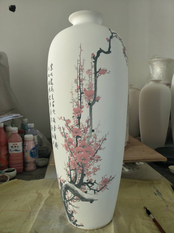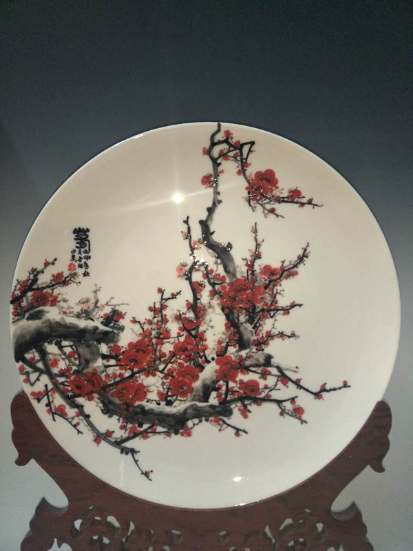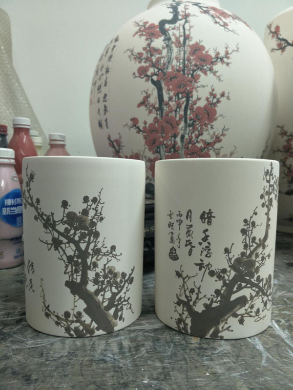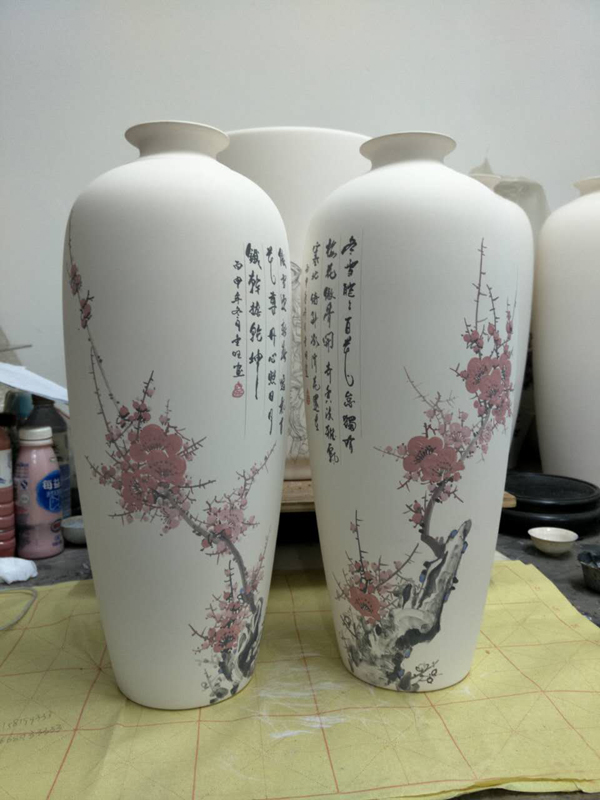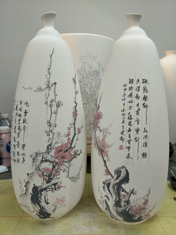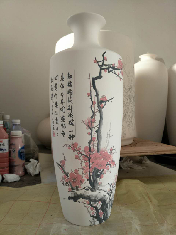 从大学毕业至今,醉心于具有不屈不挠、傲雪欺霜性格的国画梅花。倾心研究出釉下彩“凹凸”画法,经过上百次试验,克服了胎体色料、釉水不相容,色料易起泡,脱落的种种的困难,终于研究出晶莹剔透,光亮照人的釉下“凹凸”梅花,使釉下彩梅花产生极具凸出感(凸出厚度达到一毫米)。打破釉下彩“宁平不凸,宁薄不厚”的传统画法,填补了釉下彩的技法的空白。