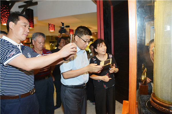 紫荆网(记者 张 娜)6月13日广州电:“2017品鉴岭南——中国著名作家广东行”汕头采风团一行,9日在汕头主办机构带领下参观了潮汕非物质文化遗产“陶瓷微书”——国宝级别的王芝文陶瓷微书艺术馆,精妙的陶瓷微书艺术和潮汕文化传承让作家们兴奋不已。对于“镇馆之宝”——入选“吉尼斯纪录”、历时7年创作烧制、需借助高清专业放大镜才能看清上书共三十多万字的陶瓷微书作品《三国志》,作家们更是惊呼“叹为观止”!