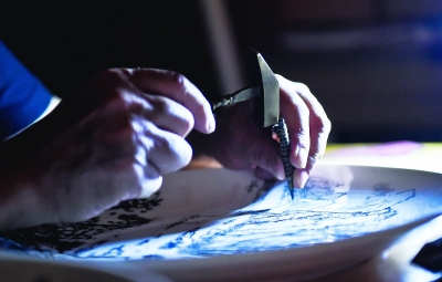 刻瓷,顾名思义,就是用陶瓷作为载体,以刀代笔,在陶瓷上进行雕刻创造的艺术形式。刻瓷艺术最显著的特点,就是硬碰硬,一刀下去便不能更改。操作时用力重则易刻偏,用力轻则不成像。所以,刻瓷不但要有深厚的美工基础,还要有稳准狠的刀工技艺。