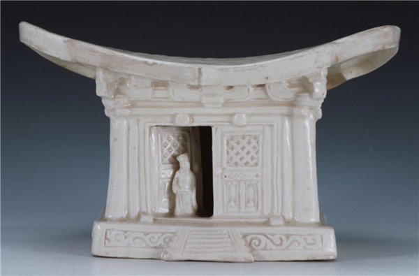三、五代~北宋 定窑白釉镂雕殿宇人物枕(关键词:稀有)