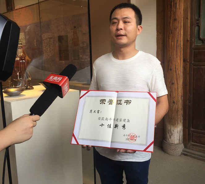 获得“十佳新秀”的憬峰建盏陶瓷研究所的范大富在采访中说:“2014年开始研究烧制建窑建盏,能够获得“十佳新秀”的称号是对我们传统手工制作的肯定,为我们建窑建盏技艺的新人提供更多展示技艺的平台。”范大富的建盏作品曾参加过海峡两岸(厦门)文化产业博览会、中国(深圳)国际文化产业博览会等活动并获奖。范大富也是获得本次建窑建盏“十佳新秀”荣誉称号中年龄最小的一位。