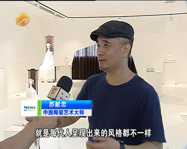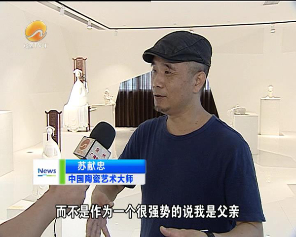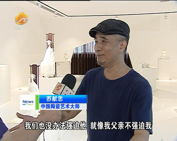 苏献中是“蕴玉瓷庄”的第四代传人。创立者,其太祖父苏学金大胆打破传统瓷雕技艺桎梏,1915年《瓷梅花》在巴拿马万国博览会上荣获金奖,祖父苏勤明,艺术构思敏捷,瓷雕技术全面,曾于1957年出席全国第一次工艺美术艺人代表大会。先后就读于景德镇陶瓷学院、清华工艺美术学院的苏献忠在德化这座以民间瓷塑为主的瓷都里算是学院派了。刚开始,他对于父亲苏玉峰那种没有精确比例,没有紧密结构,也没有形式逻辑的“吴带当风”艺术风格很不以为然,以西方现代的写实手法创作了不少瓷塑作品。对此,父亲却从来不说什么。