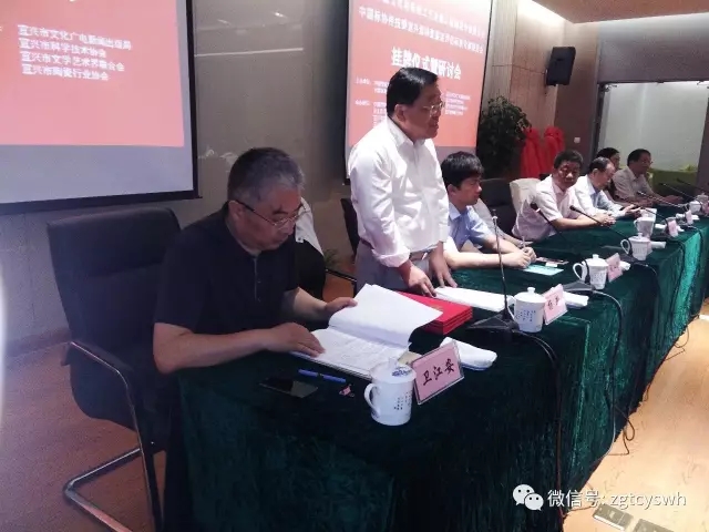 中国传统文化和传统工艺发展工程陶瓷专中国科学院国际学术交流中心副主任、中国传统文化和传统工艺发展工程工委副主任兼秘书长 杨新(右一)宣读文件 。