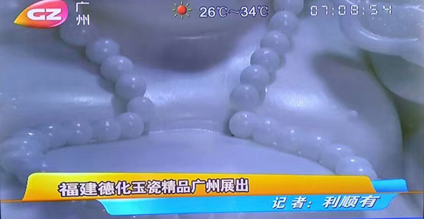 当代德化名瓷展亮相广州步行街北京路潮州汇馆,德化白瓷倍受青睐,受到各媒体的关注,广州电视台、羊城晚报纷纷对展览进行报道。