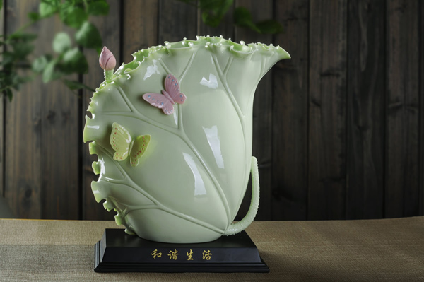 作品瓷质细腻,工艺精湛,精雕细纹,荷叶纹路纹理自然,荷叶脉络分明,叶柄倒刺密生,雕刻的栩栩如生。作者陈丽玲系百年陶瓷世家昌德陶瓷第三代传人,作品手刻签名,全球限量发行,极具收藏价值。