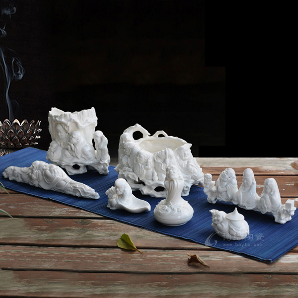 7月20日—7月30日当代德化名瓷展将在广州步行街北京路潮州汇馆展出,本次展览由广州北京路潮州汇馆主办,中华陶瓷网、博缘陶瓷协办,共展出10多位德化陶瓷艺术名家60多件作品,其中有福建省工艺美术大师郑志德、苏友德、陈丽玲,福建省陶瓷艺术大师许瑞卿、苏志强、张祥琦、李锦峰、蔡国海、曾逸腾,新锐陶瓷艺术家林建平、林彬彬、郑清海等,展出的作品类别覆盖了传统佛像、历史人物、仕女、现代居家摆件、玉瓷壶等等。