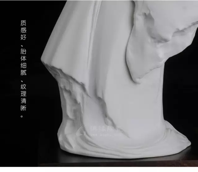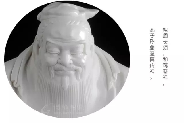 《孔子》作品以德化温润如玉的“中国白”为胎质,手工制作,胎骨洁白,坚实致密,有凝脂似玉之感。孔子的眉毛、鼻子、胡须、每一个处细节都是大师用心纯手工雕刻,孔子雕刻得活灵活现。