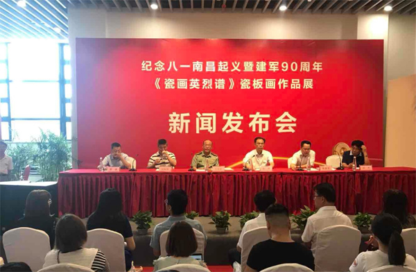 中国江西网讯 记者谢梦丽、实习生徐婷报道:7月30日上午,由江西省政府新闻办、南昌市委、南昌市人民政府联合举办的《瓷画英烈谱》瓷板画作品展新闻发布会在江西省展览中心举行。此次展出的《瓷画英烈谱》瓷板画作品展将展出90幅以英烈谱为主体的瓷板画艺术作品,是全国首创南昌瓷板画在军事题材创作上的一次全面展示,以此隆重纪念八一南昌起义暨中国人民解放军建军90周年。