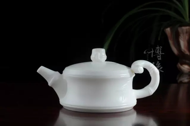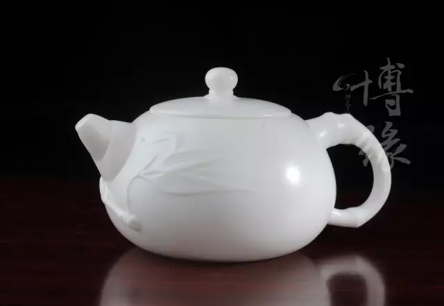 竹子亭亭玉立,不畏霜雪,四季常青,且“未出土时先有节,及凌云处尚虚心”,是中国传统美德的物质载体,大有君子之风。德化白瓷古朴清雅,该瓷壶作品壶柄宛如竹节,气质高雅。圆平盖面与壶口取平,吻合紧密,个性独立,层次分明。